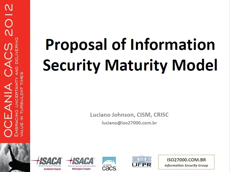 Evento : ISACA Oceania CACS 2012 - Wellington, Nova ZelândiaData : 12 / Setembro / 2012Resumo : The concepts and practices of information security has evolved in recent years, companies have sought to adapt to these changes by developing policies and information security programs that meet business needs and regulatory and legal compliance. The effort for this adaptation is estimated by the organizations through your own metrics and reflects, in most cases, the IT point of view. In this context it is possible to identify the need for a model to assess how organizations have addressed the demands of information security. Compared with other international best practices for information technology, like COBIT, information security has no structure or process maturity model that support organizations in identifying improvements in information security actions. This paper aims to propose a framework for maturity analysis of information security that seeks to close the gap identified above. To achieve this objective processes were modeled based on the information security standard ISO/IEC 27002:2005. The cases were derived from the control objectives. From this point was used the generic maturity model proposed by CMMi and widely used in COBIT, ITIL and other international best practices, to develop models of process maturity of information security. One self-assessment tools was developed to help this analysis.Arquivo PDF : Oceania_CACS_2012_EN